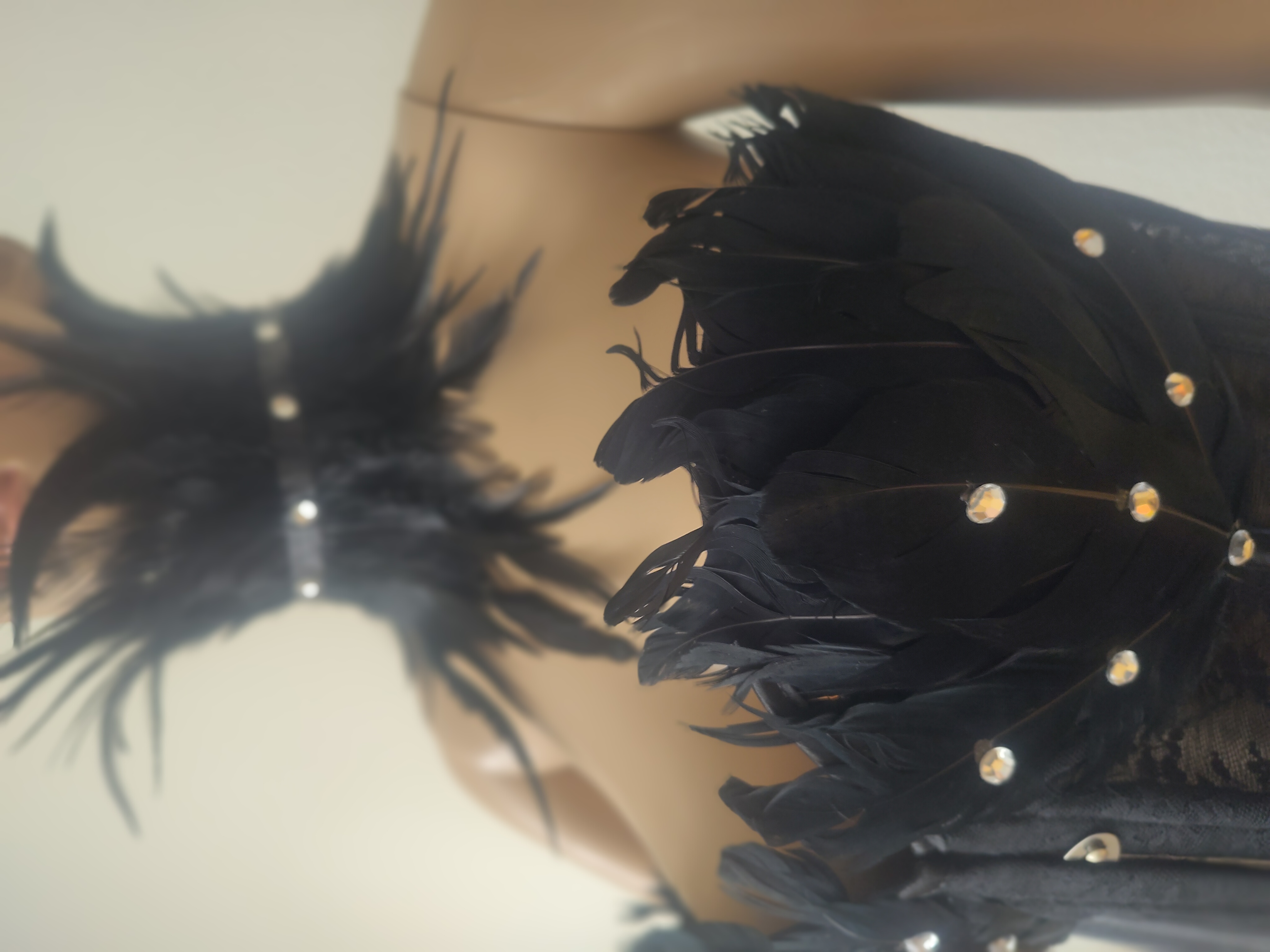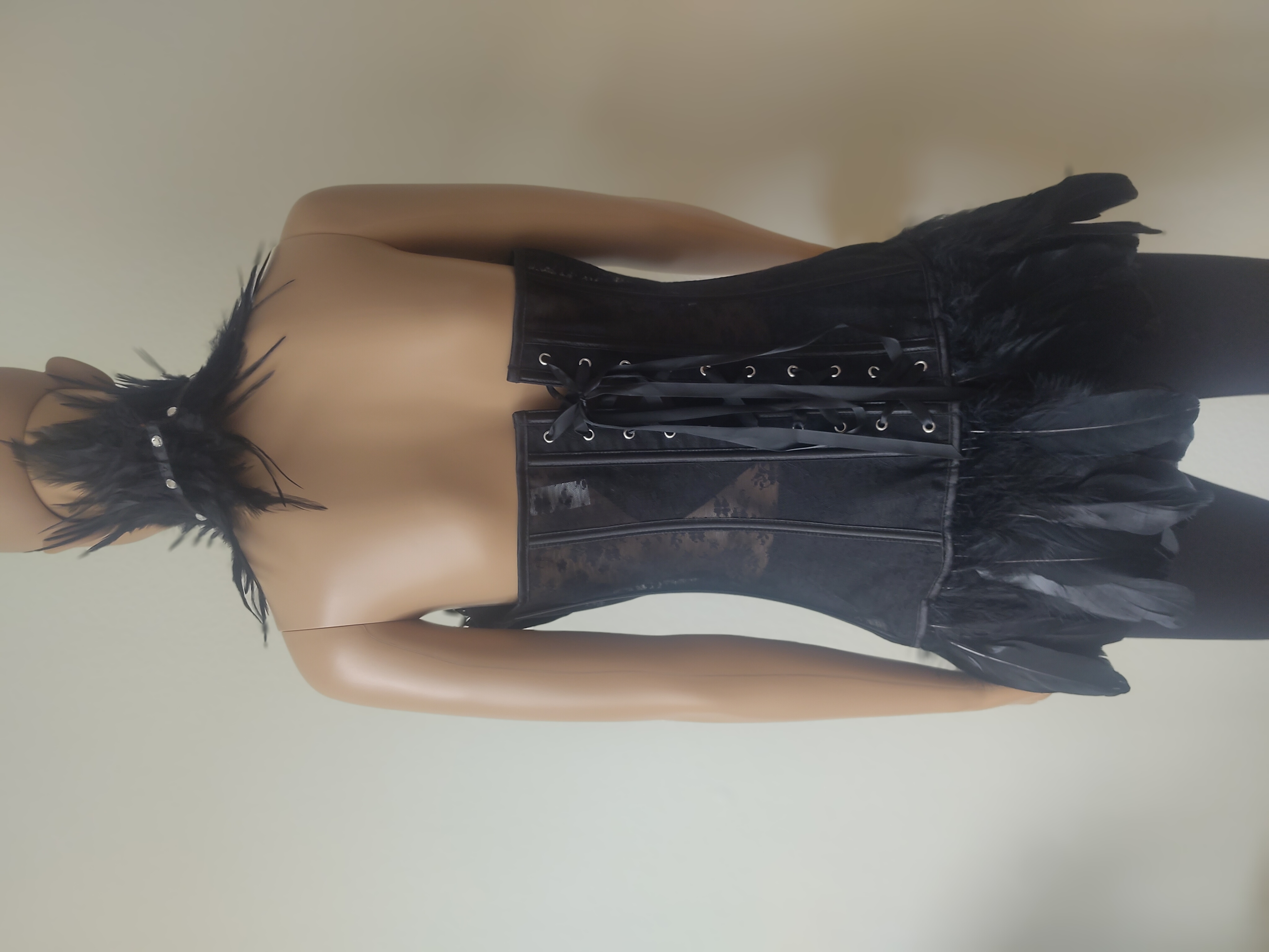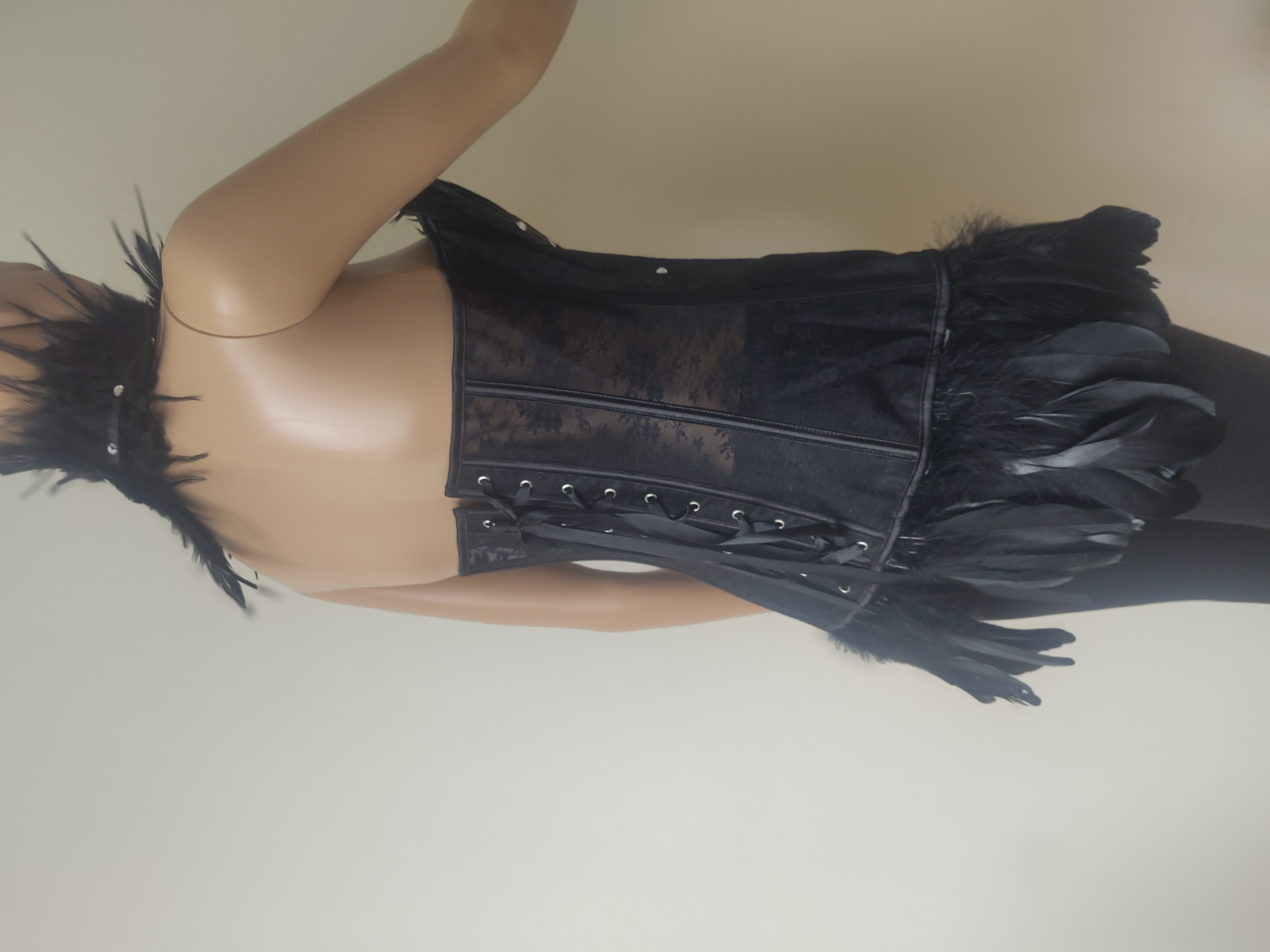 Abgerundet wird der Look durch das passende Federhalsband, das dem Ensemble einen harmonischen und stilvollen Abschluss verleiht. Ob als exklusives Dessous, für besondere Anlässe oder als auffälliges Fashion-Piece – dieses Korsett steht für Eleganz, Selbstbewusstsein und außergewöhnlichen Stil.