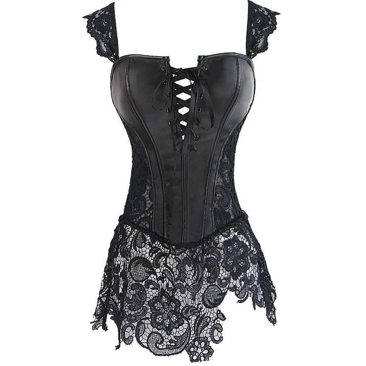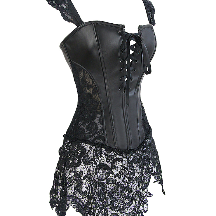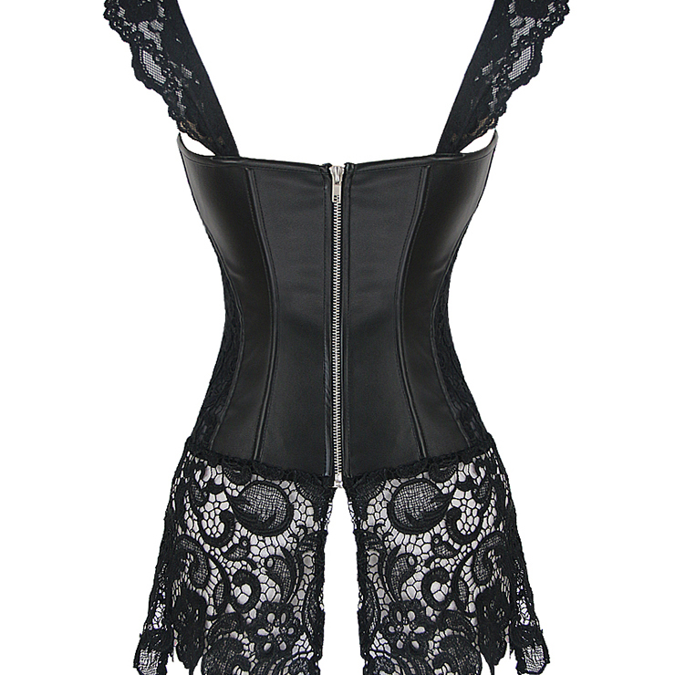 Sexy schwarzes PVC Korsett mit Venice-Spitze