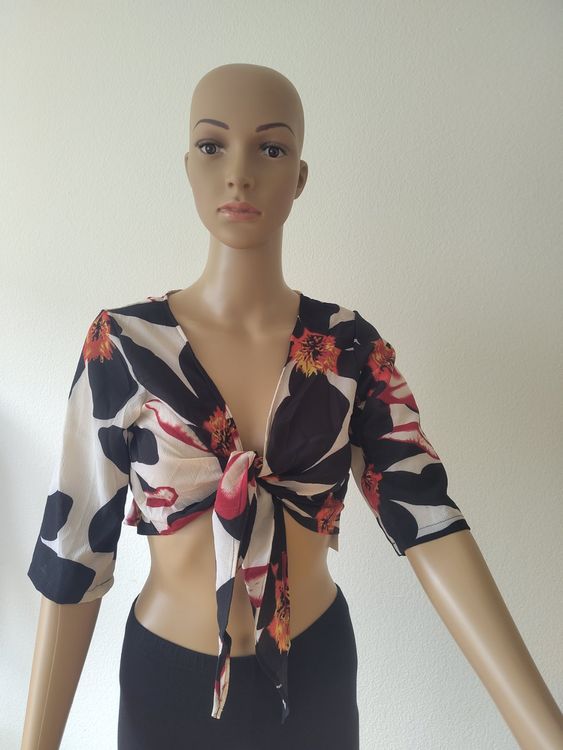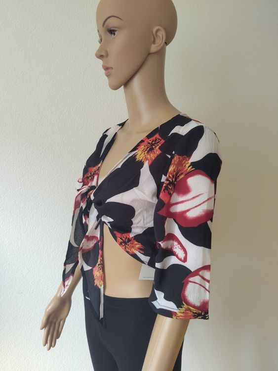 Leichter Bolero aus Viskose mit romantischem Blumenmuster – perfekt für sommerliche Outfits. Vorne lässt er sich praktisch schnüren, wodurch er individuell angepasst und vielseitig kombiniert werden kann.