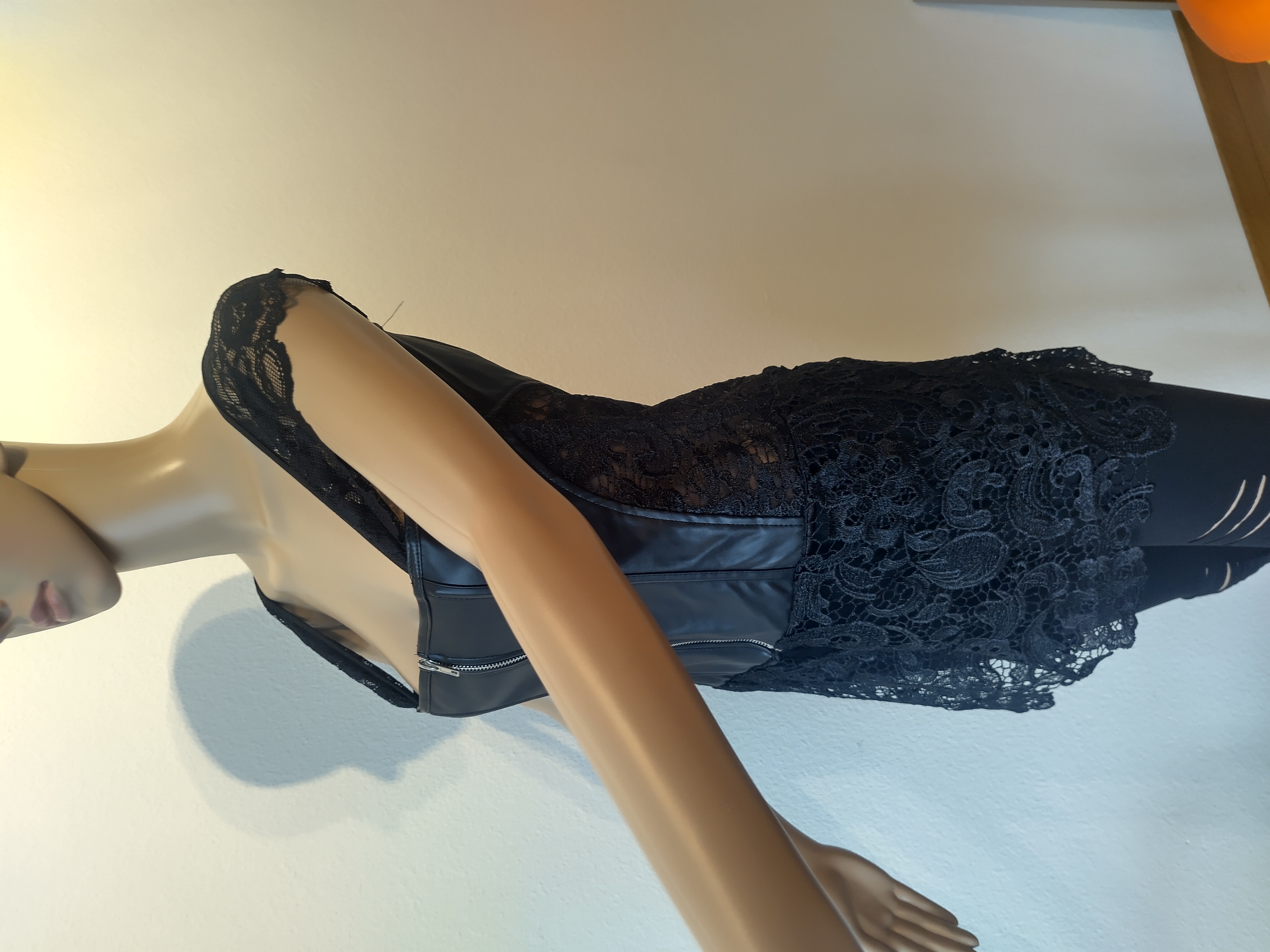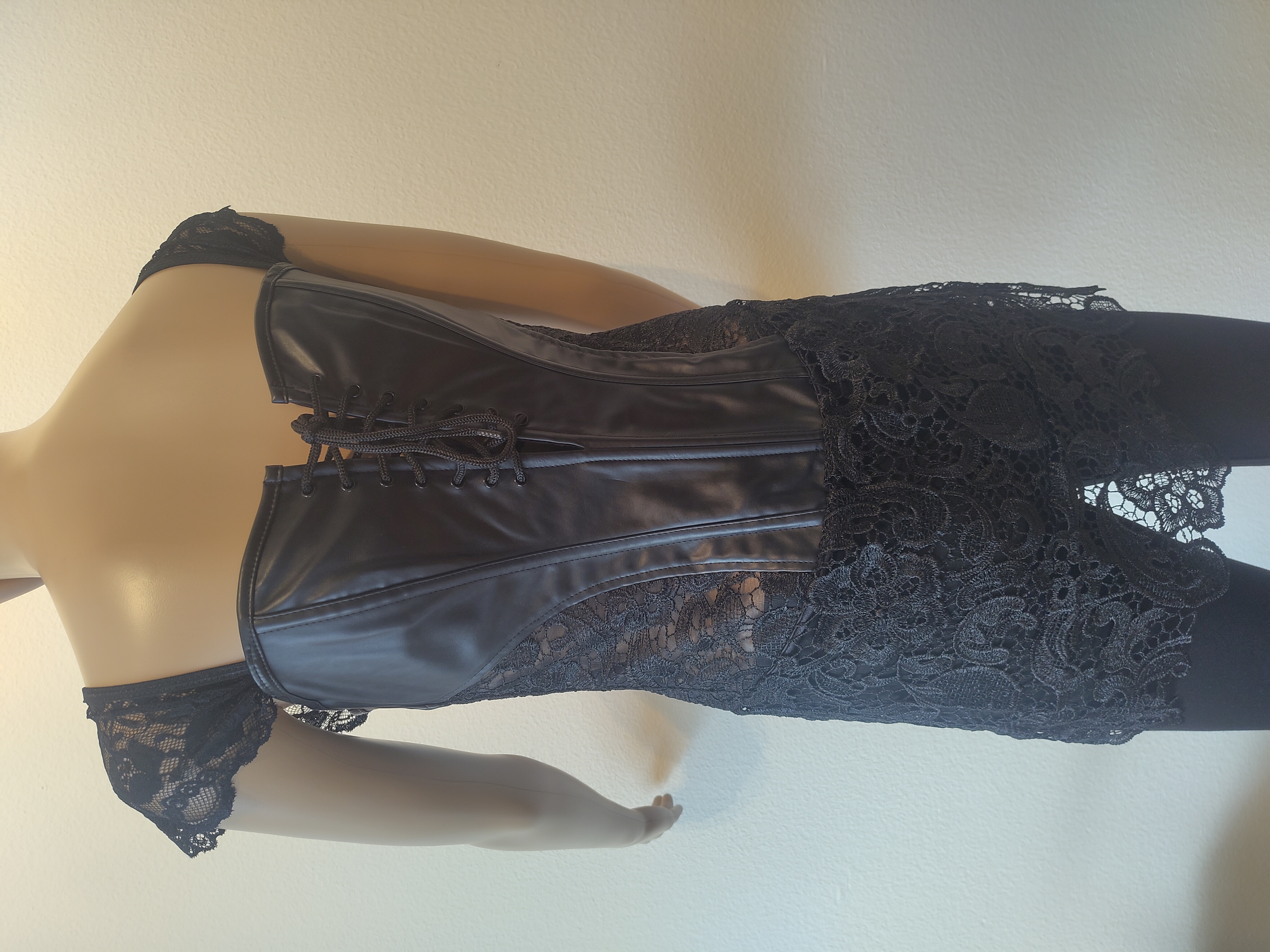 Dieses trendige Korsett im eleganten Lederlook ist ein echter Hingucker für alle, die Stil und Sinnlichkeit perfekt kombinieren möchten. Mit seinem femininen Design und den feinen Rüschen an Trägern und Abschluss sorgt es für eine edle, zugleich verführerische Optik.