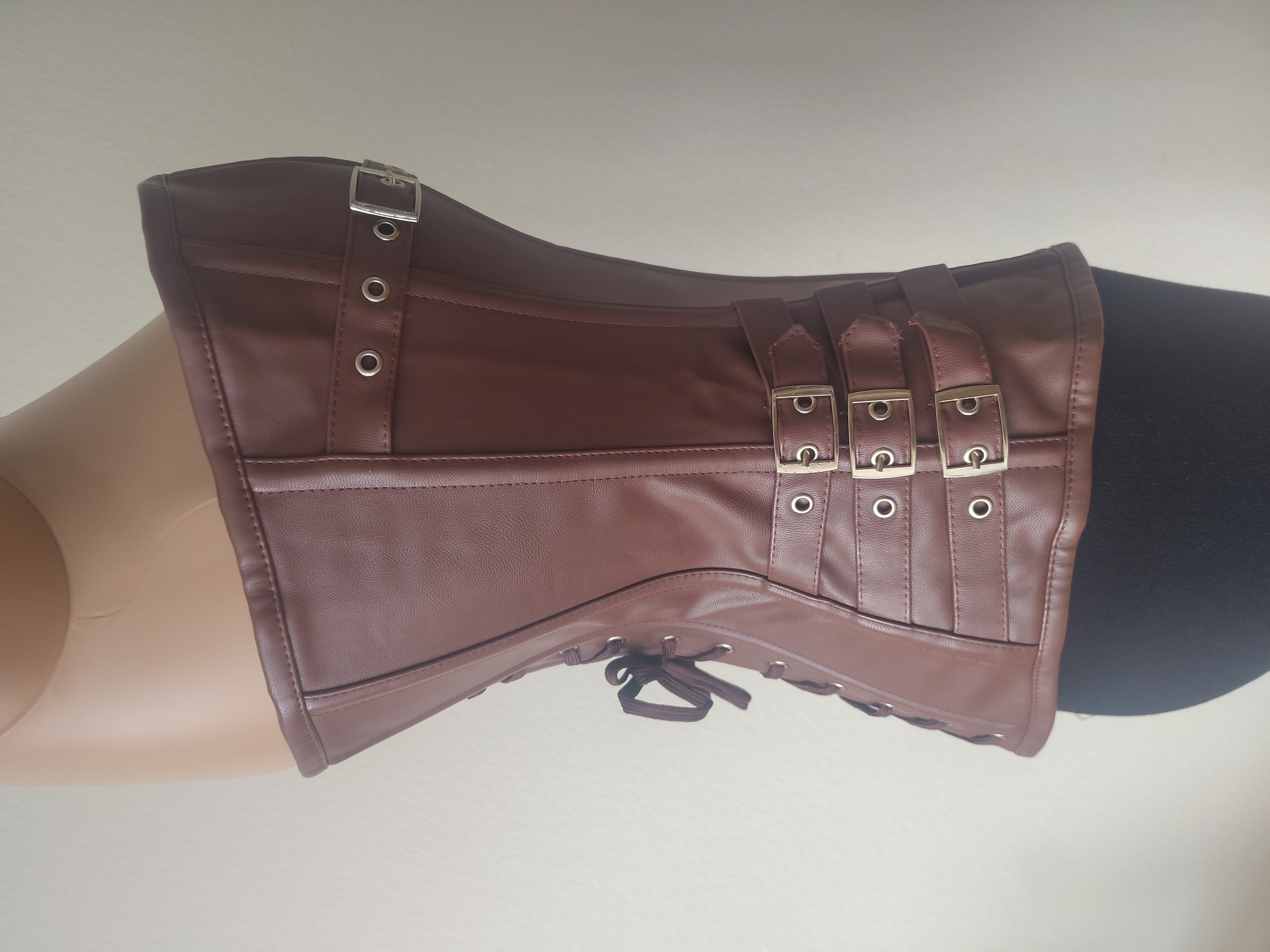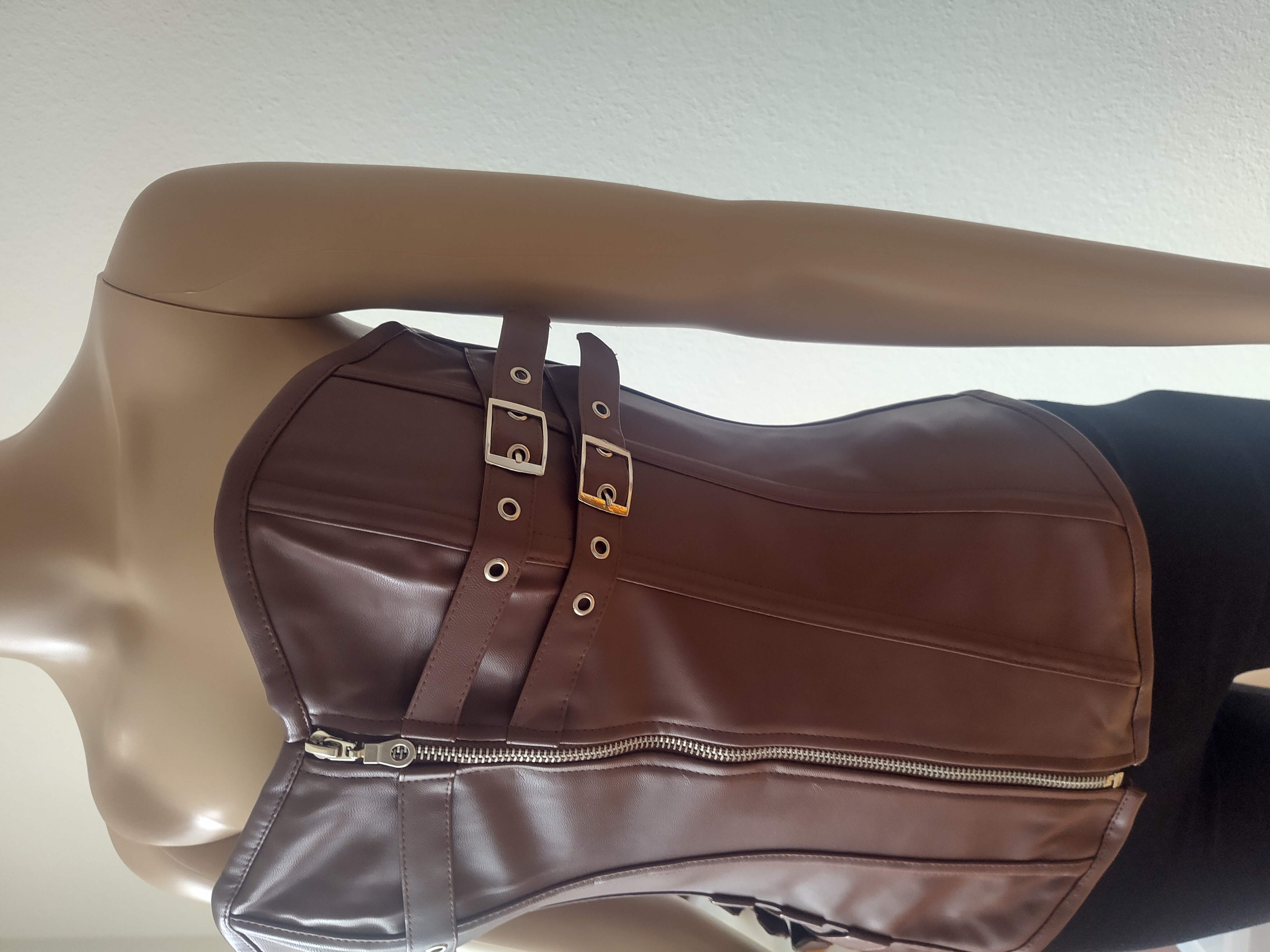 Dieses besondere Korsett aus hochwertigem PU-Leder überzeugt durch seinen modernen, markanten Look und hohen Tragekomfort. Die dekorativen Schnallen auf der linken und rechten Seite setzen starke Akzente und unterstreichen das ausdrucksstarke Design. Dank des praktischen Reißverschlusses lässt sich das Korsett schnell und bequem anziehen, ohne auf eine figurbetonte Passform zu verzichten.